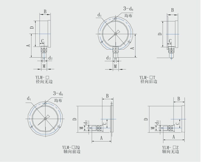 YNBF-40Ⅲ軸向帶邊不銹鋼耐震壓力表